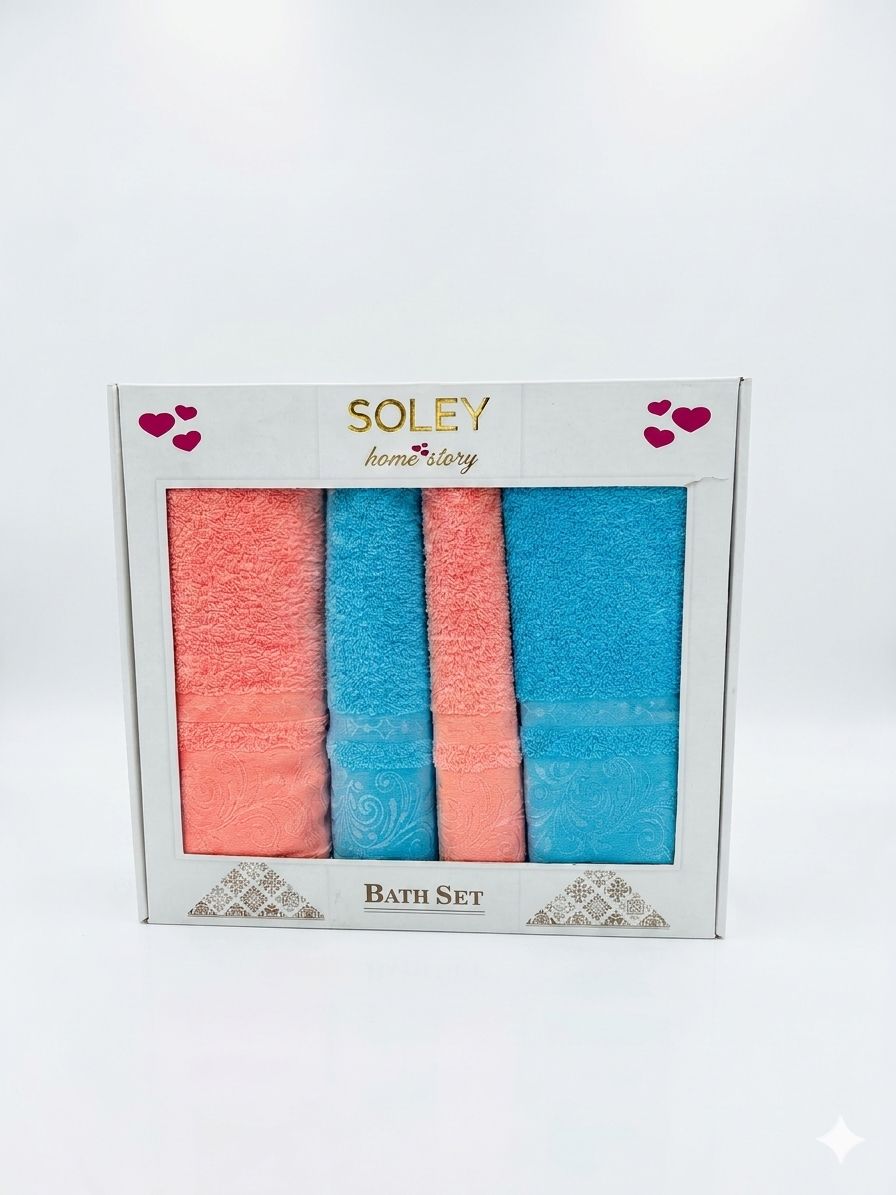 Ensemble 4 serviettes Hamam. Composition : 2 moyennes et 2 petites. Couleur bleu et saumon. Idéal pour la salle de bain, la plage ou le hammam.