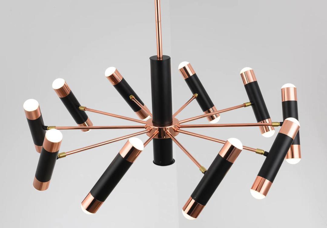 Lampe suspendue Candle en aluminium. Éclairage LED. Couleur rose galvanisé associée à une finition peinture aérosol noire. Design contemporain et épuré.